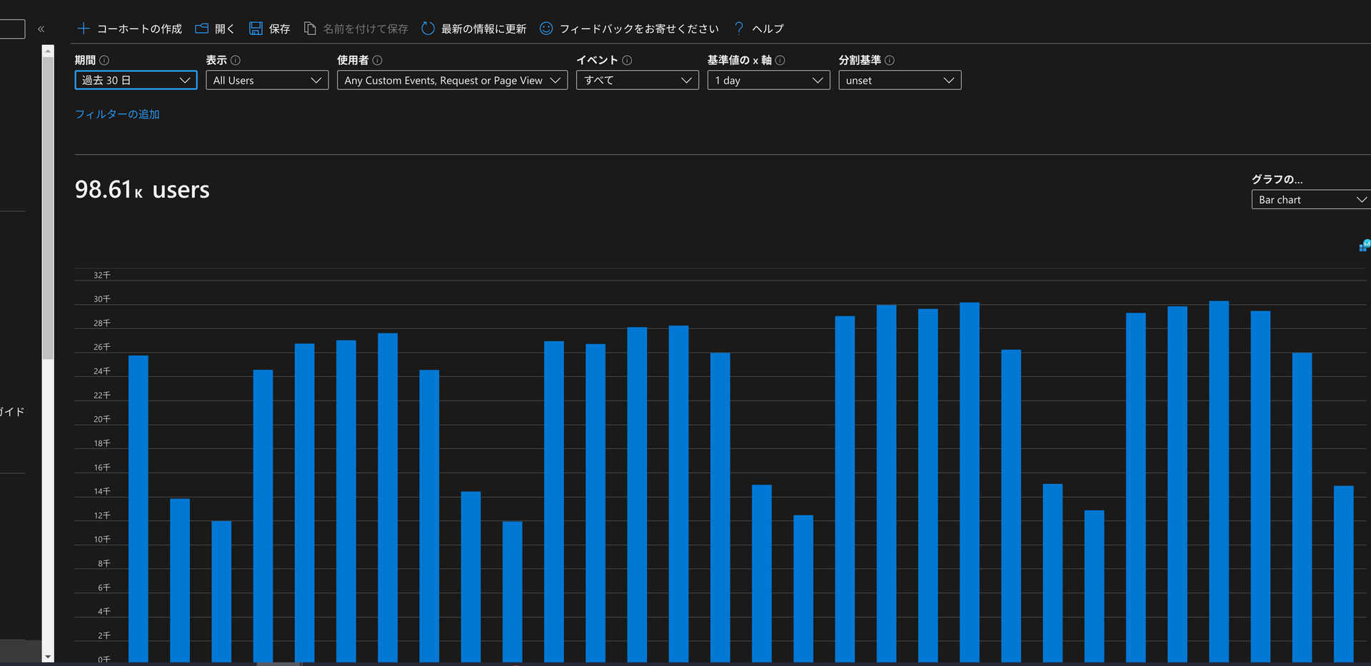 (Azure Application Insights の Users レポート画面)